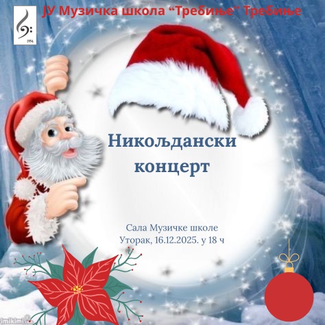 Задовољство нам је позвати Вас на Никољдански концерт који ће се одржати у уторак 16.12.2025. године , са почетком у 18 часова у концертној сали школе.